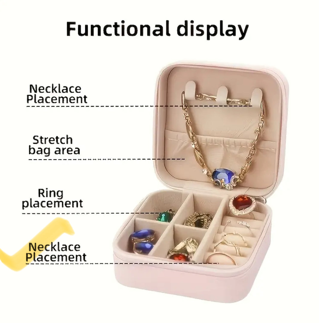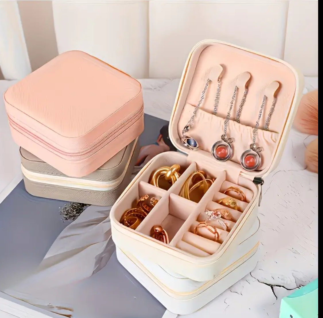 Descubre el joyero de viaje más encantador y práctico que existe. Diseñado con cuero sintético de alta calidad, este pequeño organizador no solo protege tus joyas, ¡también eleva tu estilo dondequiera que vayas!